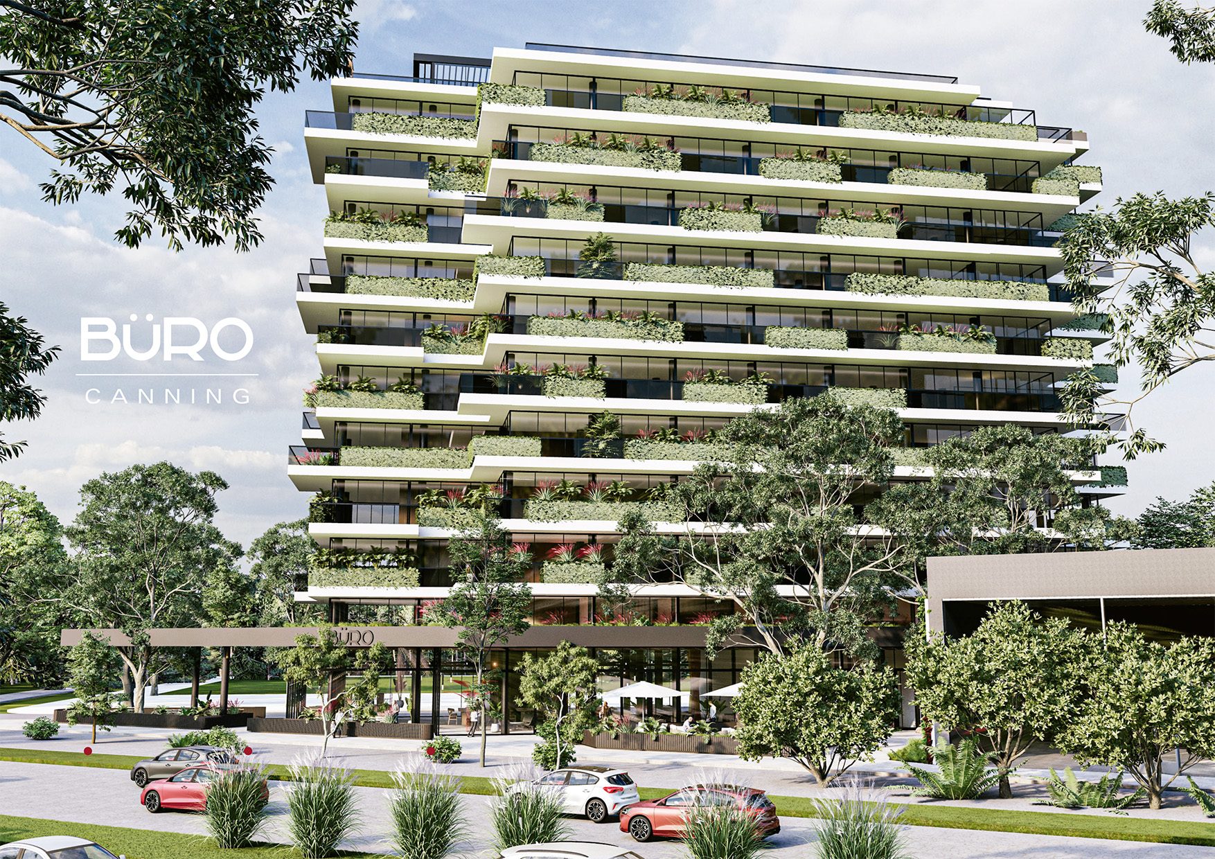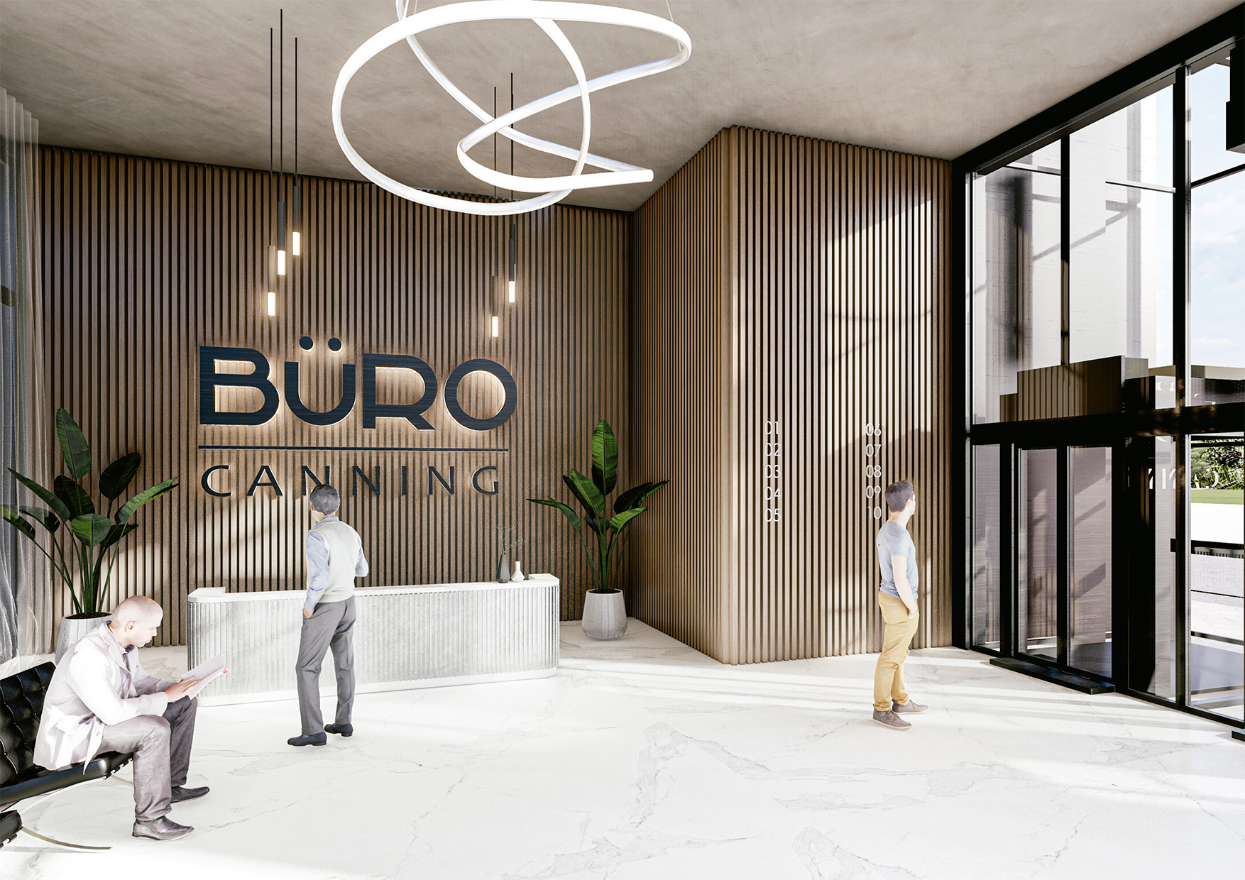 BÜRO es un proyecto innovador que redefine la forma de trabajar en un entorno de oficinas y locales comerciales, destacando la belleza natural y la abundante vegetación que caracteriza a Canning.