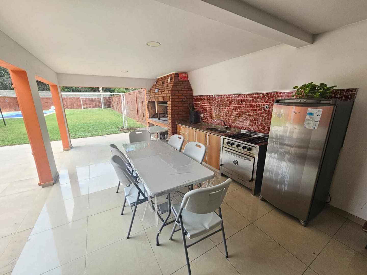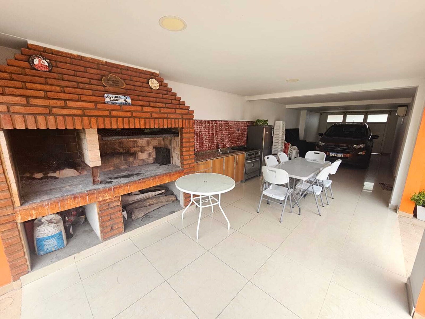 Galería cerrada, con Parrilla, isla, mesada, bacha y lugar de guardado.