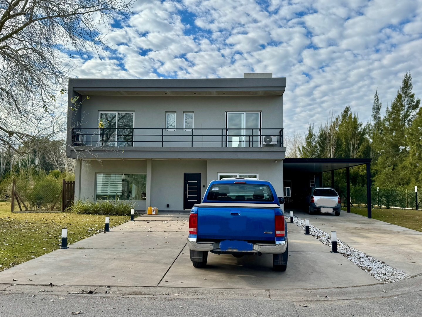 * Cochera semi- cubierta lateral para dos vehículos. Desde la cochera hay dos accesos directos uno hacia la cocina y otro al quincho.