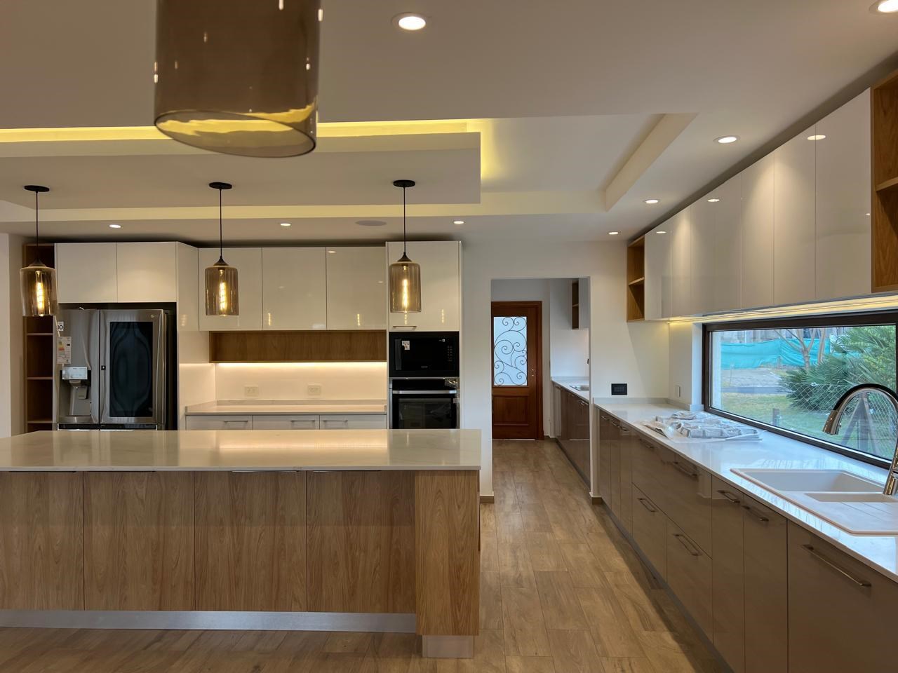 Cocina secundaria amueblada con 2 heladeras Side by side marca Samsung.