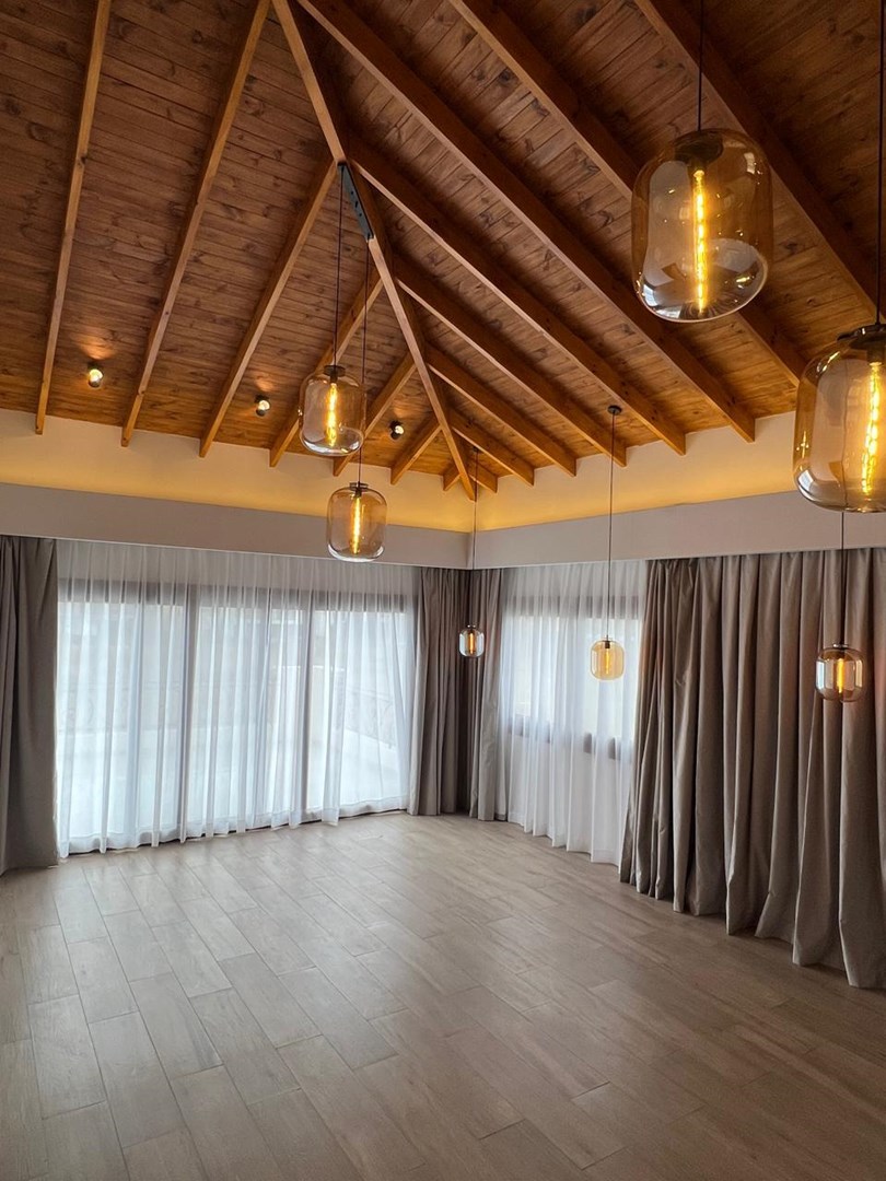 La casa se entrega con toda la iluminación y cortinas instaladas.