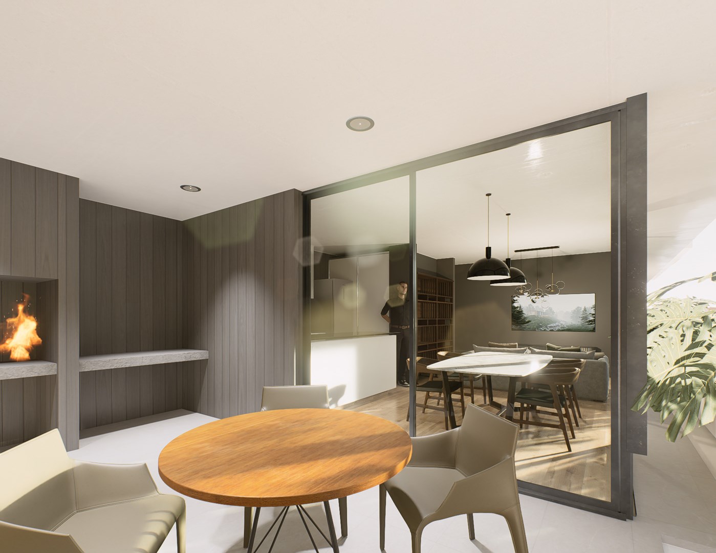 Amplio Living – comedor con ventanales con vistas abiertas al jardín.
